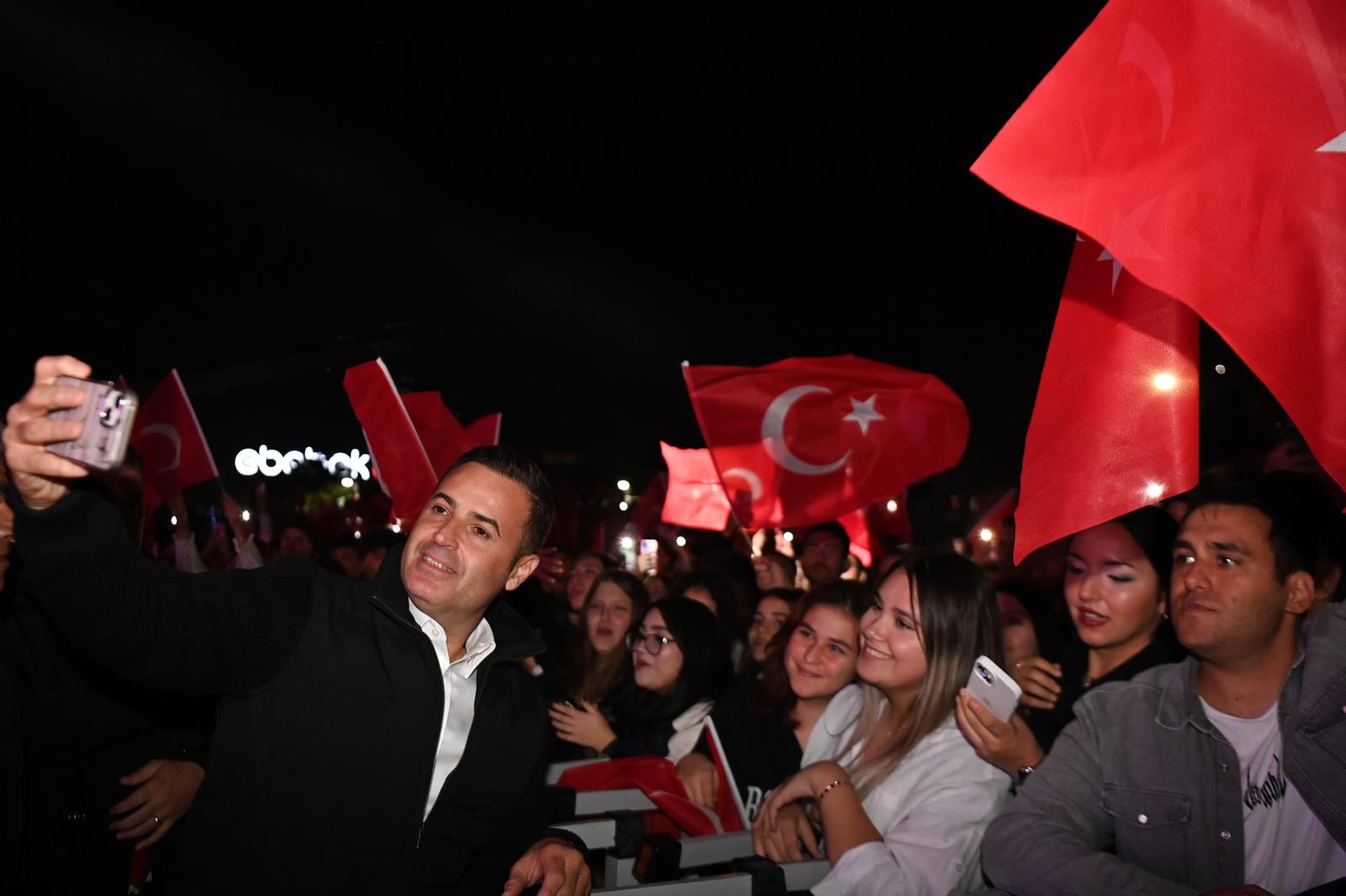Cumhuriyet Bayramı’nda ünlü sanatçı Zeynep Bastık’ı Balıkesir’de ağırlamaktan mutluluk duyduklarını belirten Başkan Ahmet Akın “Burası Balıkesir. Kuvayı Milliye’nin başşehri. Milli birliğin ve beraberliğin sembolüdür Balıkesir… Hep birlikte sizin sayenizde eşim, bütün ailem ki Balıkesir benim ailemdir. Hep birlikte Cumhuriyet’imizin 101. Yılını büyük bir coşkuyla kutluyoruz. Dört gündür Balıkesir’imizin 20 ilçesinde coşkuyla, Ulu Önderimiz Gazi Mustafa Kemal Atatürk’ü anıyoruz. Emanet edilen Cumhuriyetimize sonuna kadar sahip çıkıyoruz. Cumhuriyet Bayramımız kutlu olsun. Yaşasın Türkiye Cumhuriyeti! Yaşasın Gazi Mustafa Kemal Atatürk!” ifadelerini kullandı.