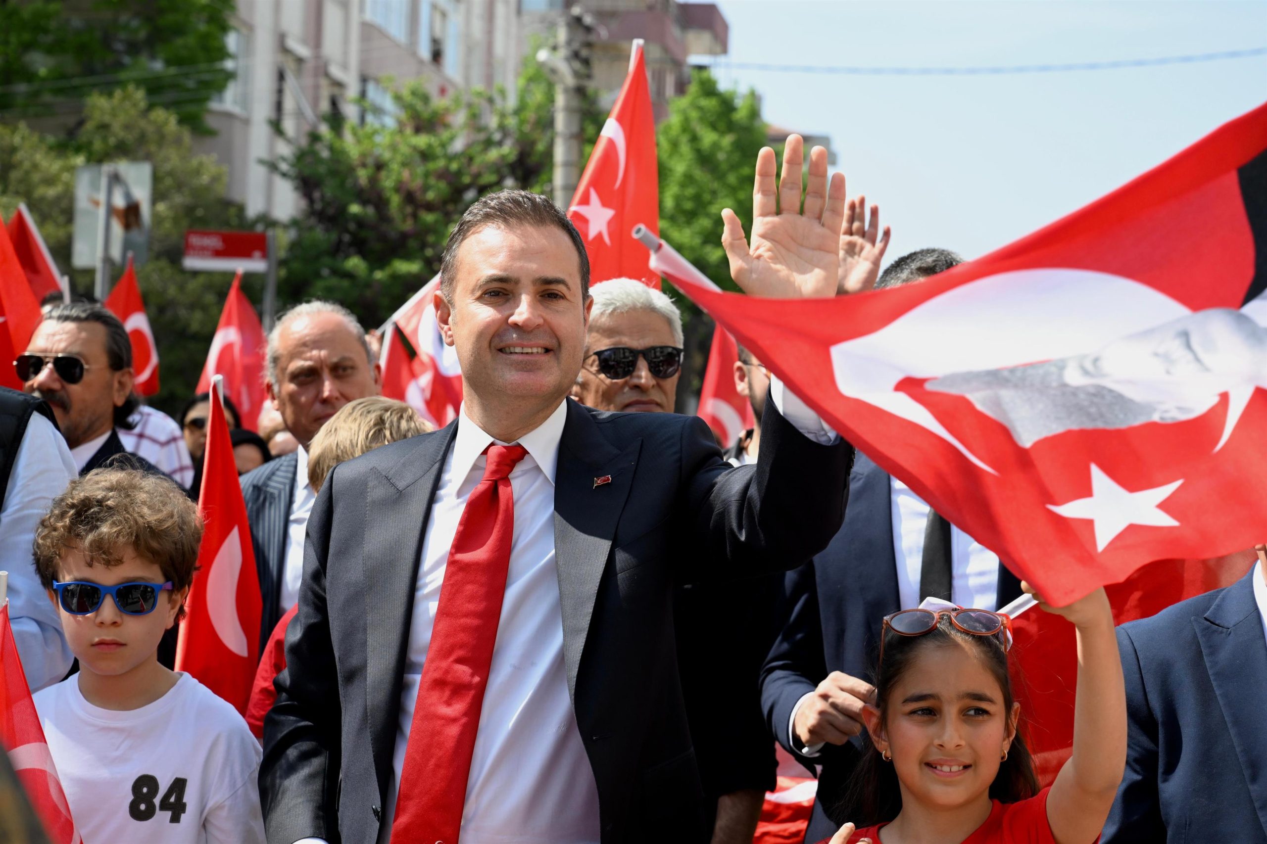 Akın, Karesi Belediyesinin Atatürk İlkokulu’nda düzenlediği kutlama programında çocukların coşkusuna eşlik ederken programa katılan miniklerin bayramını kutladı. Çocukların neşesini birlikte yaşayan Akın, Altıeylül Belediyesi tarafından organize edilen kortej yürüyüşüne katıldı. Renkli ve duygu dolu anların yaşandığı yürüyüşte Akın ve Altıeylül Belediye Başkanı Hakan Şehirli, kortej boyunca elinde Türk bayrağıyla sokakları dolduran çocukların bayramını kutladı. Kuvayımilliye Meydanından başlayan yürüyüş Asuva Parkı’ta sona erdi. Başkan Akın, kortej boyunca çocuklarla el ele yürüdü. Balıkesirli vatandaşlar, balkonlarından ıslık ve alkışlarla yürüyüşe destek verirken ön sıralarda yer alan çizgi film karakterlerinin maskotları korteje renk kattı. 7’den 70’e herkesin katıldığı yürüyüşte vatandaşlar, ellerinde Türk Bayraklarıyla marşlar söyledi.