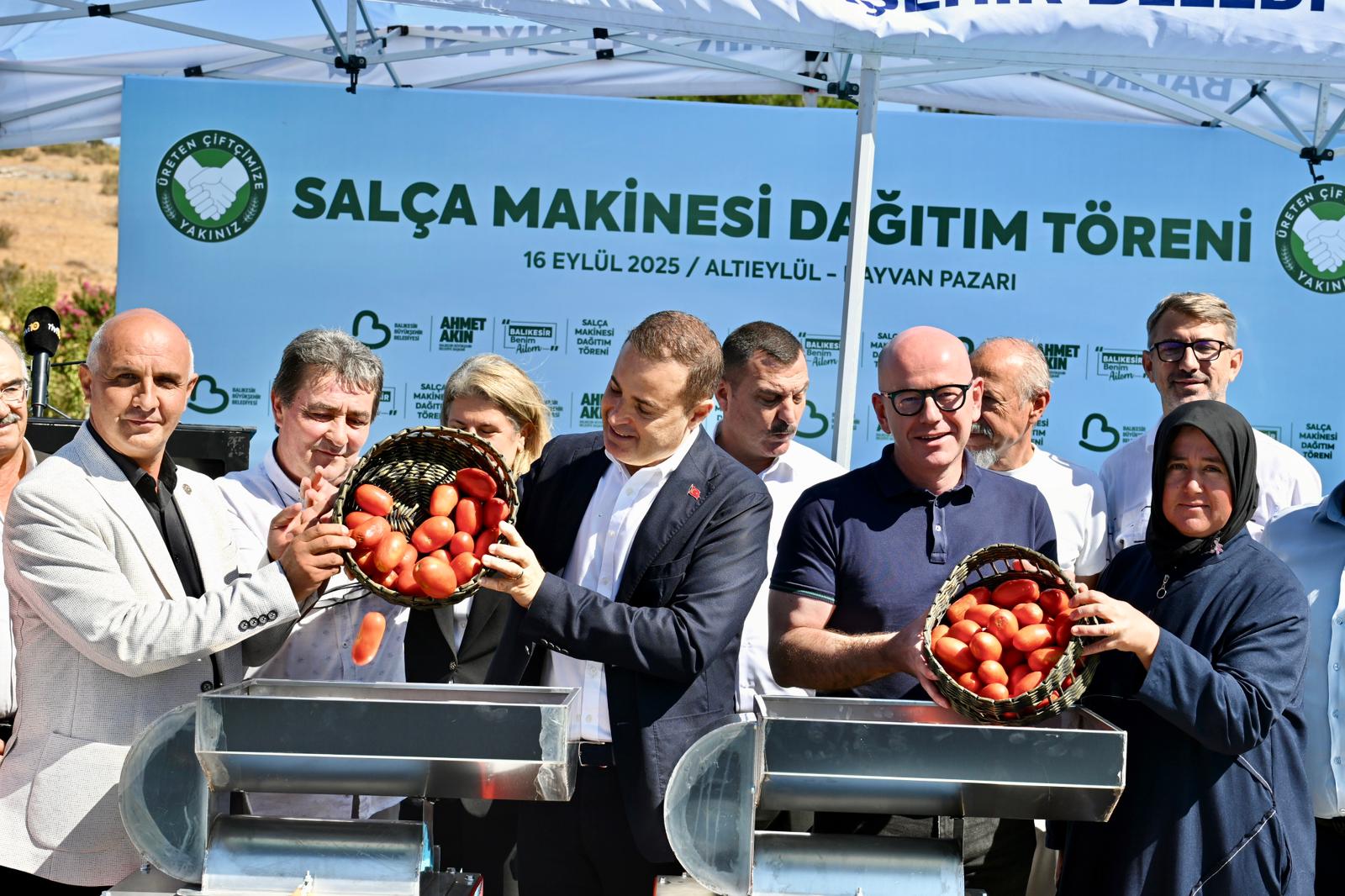 Çiftçinin alın terinin karşılığını almasının önemli olduğunu söyleyen Balıkesir Büyükşehir Belediye Başkanı Ahmet Akın, tarımsal girdi maliyetlerindeki yüksek artışlara karşı Büyükşehir Belediyesi olarak her zaman çiftçinin yanında olduklarını söyledi. Her zaman üreticilerin yanında olmaya söz verdiğini ve sözünü tuttuğunu dile getiren Akın, üreticilerin ortaya çıkardığı ürünün katma değeri yüksek hale gelmesini desteklemek için salça makinesi desteklerinin belirli periyotlarla süreceğini belirtti. Çiftçinin elinde mahsulünün kalmaması için Balıkesir’de büyük bir emek harcadıklarını ifade eden Akın, “Büyükşehir Belediyemiz olarak 20 ilçemizde, 16 ziraat odamız üzerinden 200 adet salça makinesini üreticilerimizle buluşturuyoruz. Ziraat odalarımıza salça makinelerimizi teslim edeceğiz ve onlar da mahalle muhtarlarımıza teslim edecek. İhtiyacı olan mahallelerimiz, bunları temin ederek kullanacak.” diye konuştu.