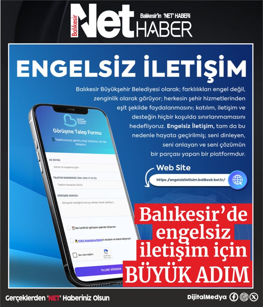 Balıkesir Büyükşehir Belediyesi, herkes için eşit ve erişilebilir bir yaşam anlayışı için hizmetlerini çeşitlendirmeye devam ediyor. Bu kapsamda işitme ve konuşma engeli bulunan vatandaşların belediye ile olan iletişimlerini sağlamak için arama motoruna https://engelsiziletisim.balikesir.bel.tr/ adresi yazılarak başvuru sayfasına giriş yapılacak. Vatandaşlar, açılan sayfada ad, soyadlarını yazdıktan sonra iletişim numaralarını belirtilen kutucuğa yazacaklar. Başvuru sahibi özel gereksinimli bireyler, görüşmek istedikleri konuyu yazarak ileri bir tarihe randevu almak için ilk kutucuğu işaretleyebilecekler. KVKK anlaşma metnini ve “Ben robot değilim” kutularını işaretledikten sonra “Talebi gönder” butonuna tıklayan vatandaşlar başvurularını kısa sürede tamamlayabilecekler. Ana sayfada yer alan “Görüşmeye Başla” butonuna tıklayan özel gereksinimli bireyler, işaret dili tercümanı desteğiyle taleplerini belediyeye ulaştırabilecekler.