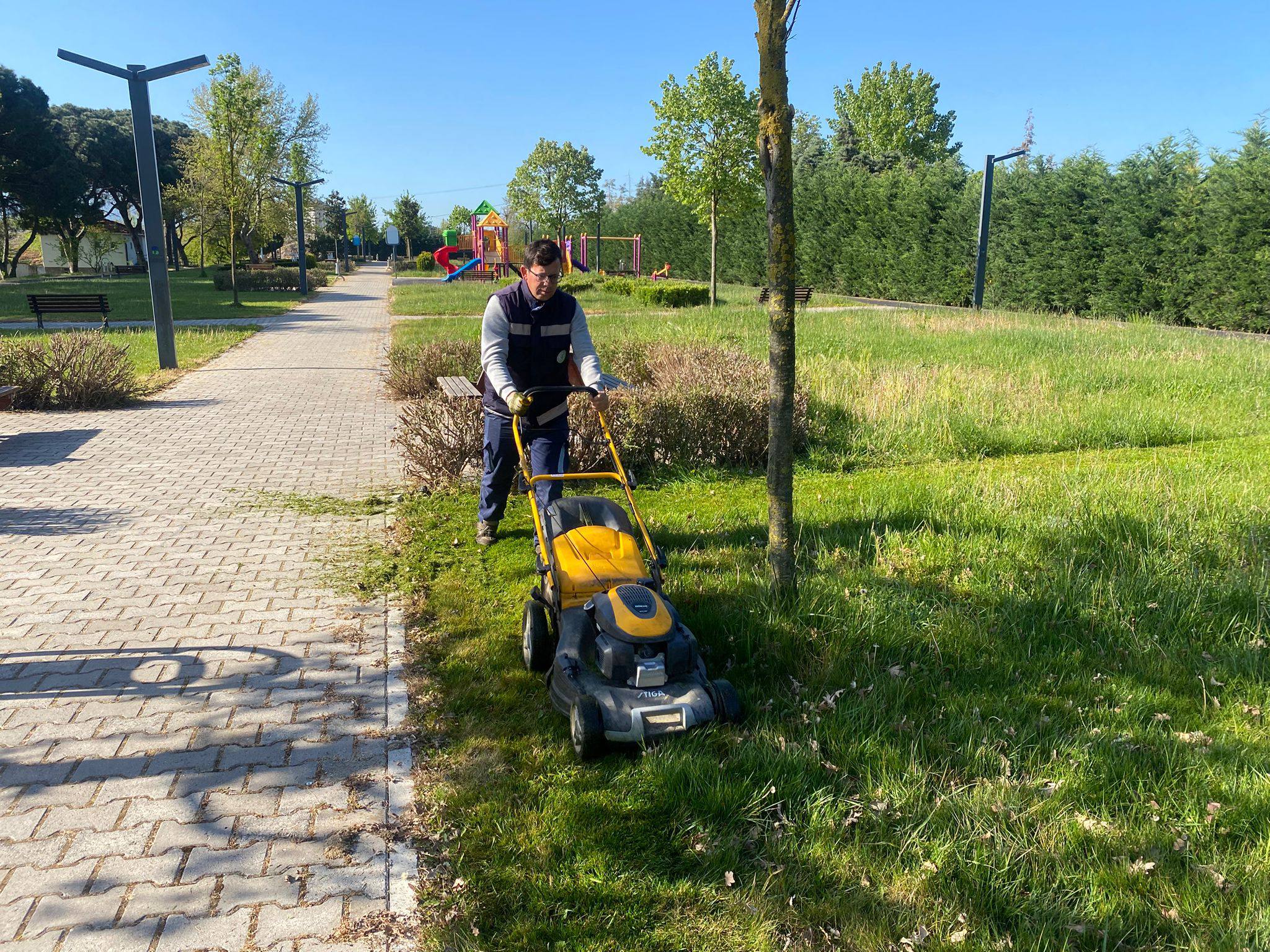 Fen işleri, temizlik ve park-bahçe ekipleri de mahallelerde kilitli parke taşı döşeme, park tadilatı, bordür döşeme, ağaç budama, ilaçlama, cami lavabo temizliği ve rutin temizlik çalışmalarına devam etti.